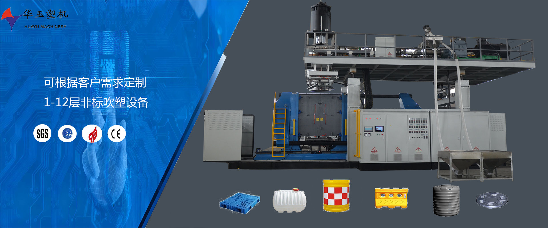 濰坊市華玉塑料機(jī)械有限公司創(chuàng)辦于貳零零貳年,是超大型全自動(dòng)中空吹塑設(shè)備專業(yè)生產(chǎn)廠家。公司融合國內(nèi)外先進(jìn)技術(shù)和理念,專業(yè)設(shè)計(jì)、生產(chǎn)、銷售一層到十層的大型全自動(dòng)中空成型機(jī)組。我公司生產(chǎn)的各型號(hào)吹塑機(jī)可生產(chǎn)50升到30,000升的各類塑料水桶,噸桶、雙環(huán)桶、水馬、路錐、隔離墻托盤、桌板、浮筒、皮劃艇、工具箱包等中空制品。優(yōu)良的品質(zhì)、穩(wěn)定的性能、優(yōu)越的性價(jià)比使公司產(chǎn)品不僅暢銷國內(nèi)市場(chǎng),并出口到亞洲、東南亞、中東、歐洲、北美、南美、非洲等80多個(gè)國家和地區(qū),深受客戶的好評(píng)...